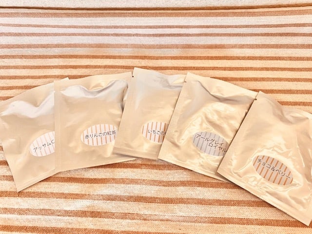 「チョコ&ミント」「メープルシロップティ」「赤りんごの紅茶」「いちごの紅茶」