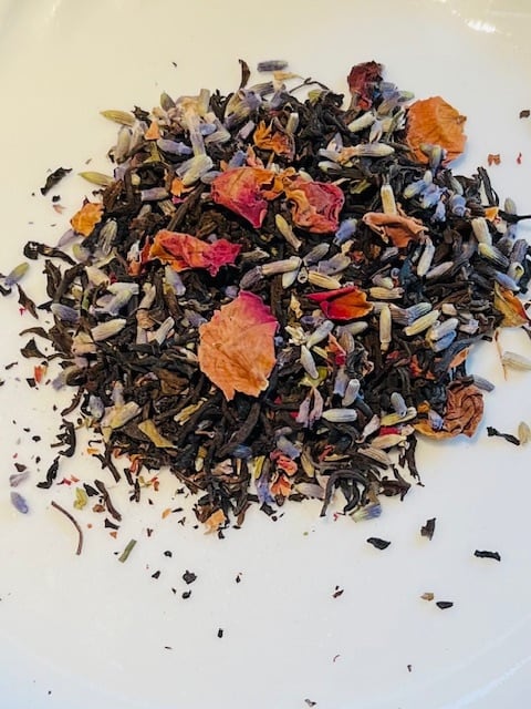 スリランカのデカフェ紅茶にラベンダーとローズを